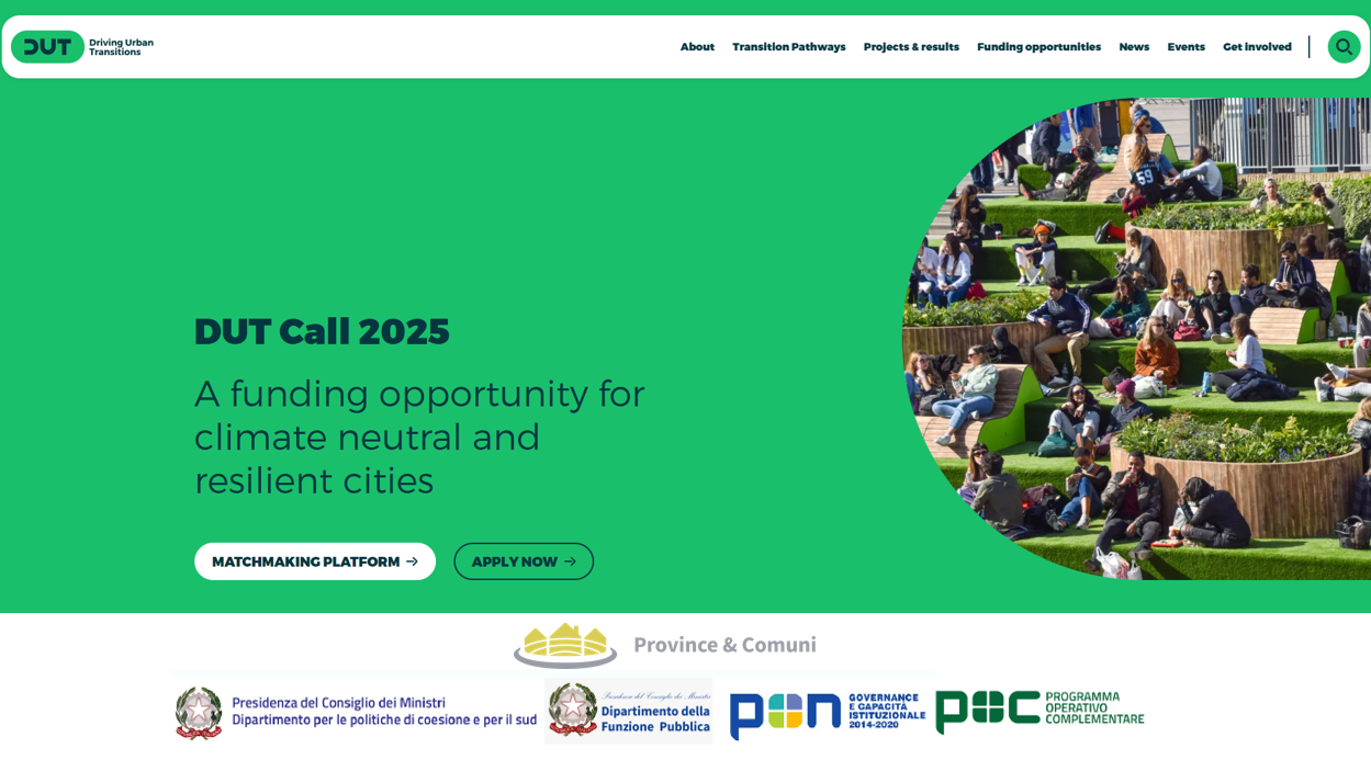 APERTA LA NUOVA CALL 2025 DELLA DRIVING URBAN TRANSITIONS (DUT)