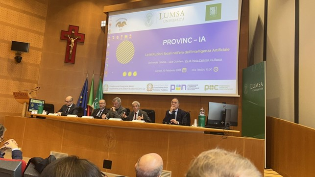 Si è svolto ieri 10 febbraio a Roma il convegno “Provinc-IA. Le istituzioni locali nell’era dell’Intelligenza Artificiale” organizzato dall’ Unione delle Province d’Italia in collaborazione con Università LUMSA e Centro di Ricerca “Leopoldo Elia” (CREL), all'interno delle attività del progetto “Province&Comuni”, promosso dall’UPI nell’ambito del Programma Operativo Nazionale Governance e Capacità Istituzionale e del Programma Operativo Complementare (POC) al PON GOV 2014-2020 del Dipartimento della Funzione Pubblica.