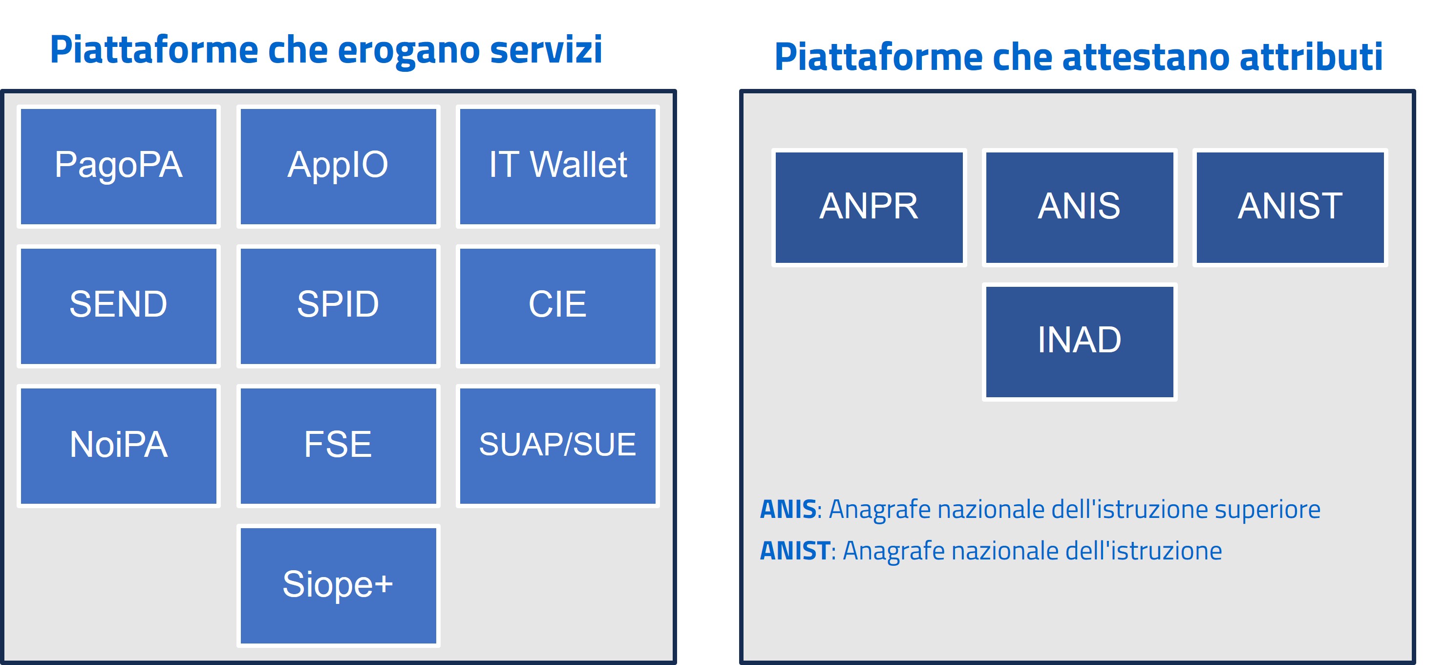 Le piattaforme della PA offrono funzionalità fondamentali nella digitalizzazione dei processi e dei servizi della PA. Esse si suddividono in due categorie: